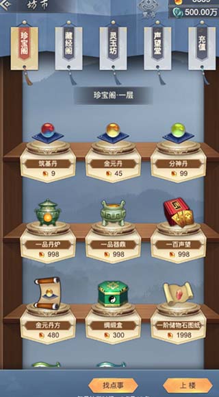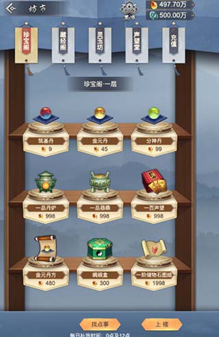 1、在珍宝阁中道友可以利用灵石购买一些游戏中的道具