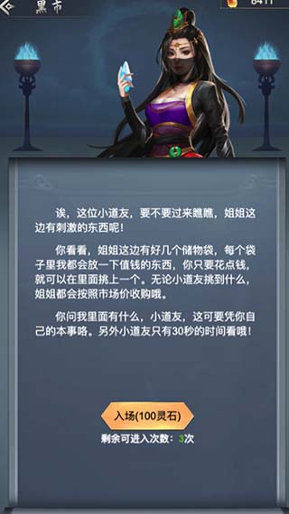 6、黑市每日可以进入3次,御史大夫可以额外增加1次。在黑市中所有的东西都将转化成对应的灵石返还给玩家