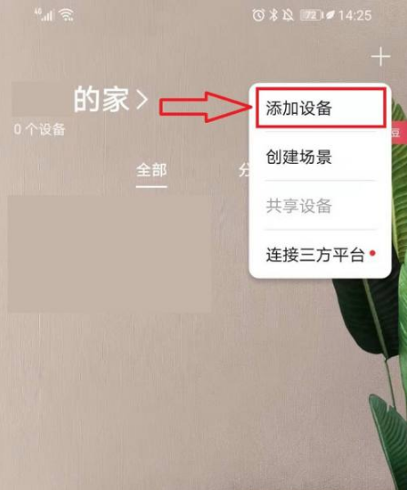 3、在弹出的菜单中点击【添加设备】,APP将自动扫描设备。