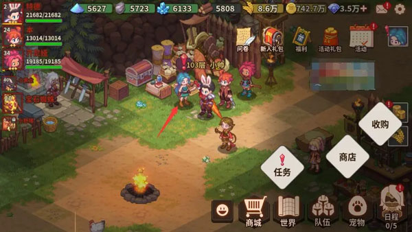 营地商店——每天四点刷新,随机更新游戏道具。有时候可以用金币购买到超高性价比的道具。还能进行装备、卡牌、宠物的收购。注意!收购的装备就会彻底消失,请谨慎选择!