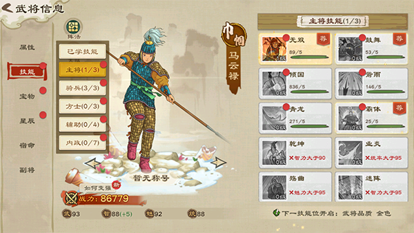 武将品质达到红色后会开启副将功能,选择合适的副将可以大大提升主将的战力。