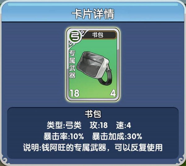 专属:武将自带,属性较低,但使用后不会消失,每次进攻都可以使用