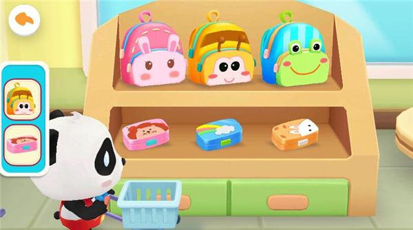 5、此外,游戏中还有一个购物车功能;点击购物车图标,你可以购买一些小书包,这些小书包可以用来存放你在游戏中收集的物品,如截图: