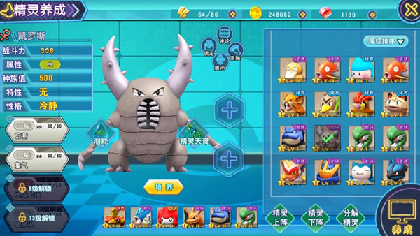 在游戏前期,碰到的敌人并不会特别的强大,所以玩家们在宠物阵容的编排上,更多需要考虑的地方是阵容的适配度,而不是其中的宠物战斗力有多么的厉害。小编为大家推荐的一套阵容中包含有烈焰猴、卡比兽、凯罗斯、大针蜂、雷电宠、皮可西。这六只小精灵的阵容,可以完美的去应对前期的任何挑战。