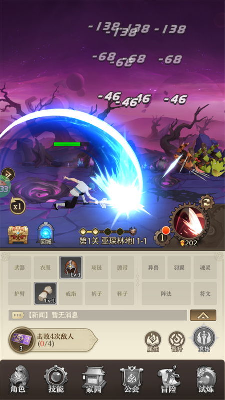 3、角色升级,分解装备获得主角经验。