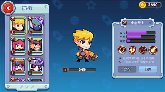 火力全开的全能战士、能防御一切伤害的铁锤、无限回血光环的酋长、携带“混乱药剂”的炼金术师……诸多天赋异禀身怀绝技的英雄们还有10秒到达战场,他们将采用技能发出致命一击,准备接招吧!