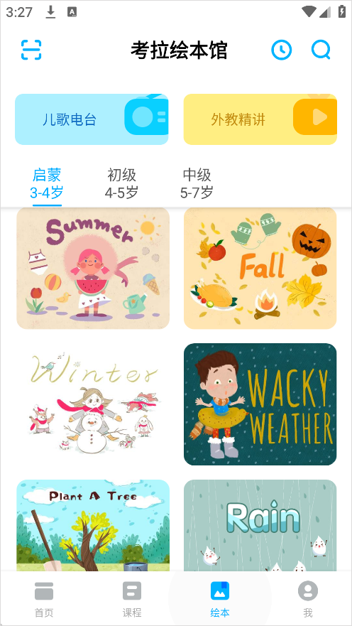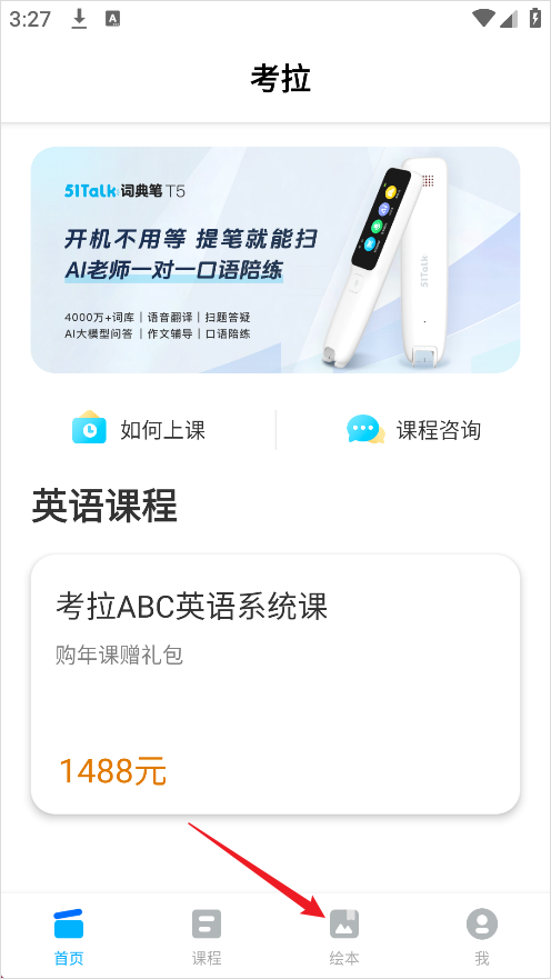 1、打开考拉ABC,在底部菜单中找到并点击【绘本】栏目,见下图: