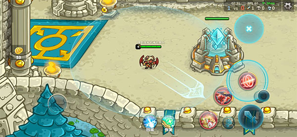2、游戏玩法为横向地图单路推塔模式,摧毁敌?基地获胜。
