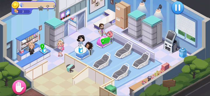 1、闯关收集星星,解锁医疗设备与装饰,提升医院服务质量。