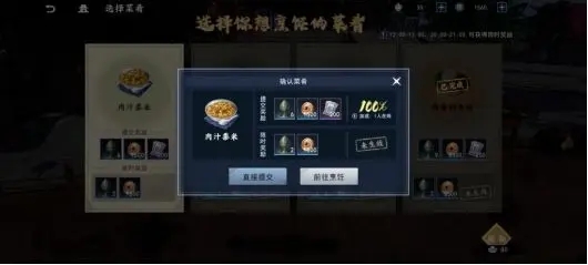 接着在宴会场地采集所有的食材交给仓曹,再进行烹饪,烹饪完提交就能收到奖励啦