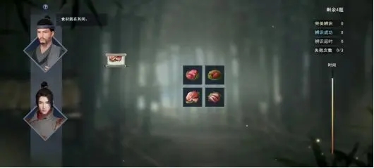 选择一道菜品后,跟仓曹对话,辨认出菜品需要的所有食材