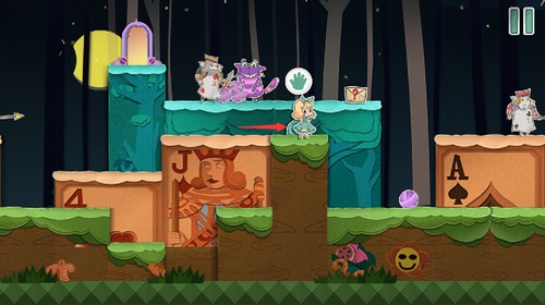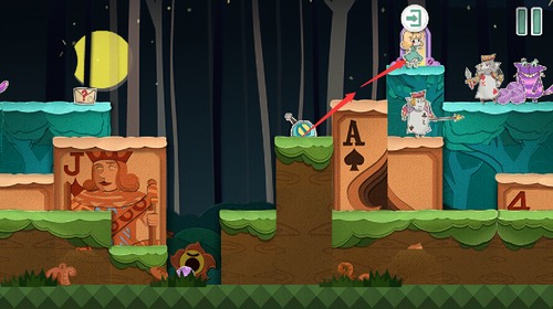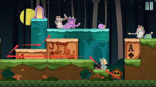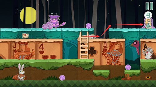 扑克兵会被球砸晕,趁着球的间隙快速移动到右上角的门里。