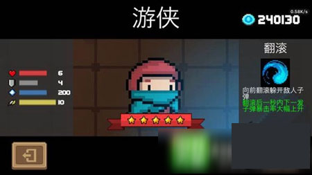 解析:如果不想充钱解锁英雄的玩家朋友,小编极力推荐游侠。升满星之后,翻滚加近战武器,基本上无伤过小怪。翻滚时是无敌的,所以可以躲避非常多伤害,在宝石解锁的人物 当中算非常好用的职业。