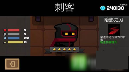 解析:让小编选,刺客应该是现在元气骑士最强的职业,非常好用。暗影之刃可以增加大量的移速,并且突进期间是无敌的,可以躲避大量的伤害,技能自带一个隐藏效果就是用技能杀死怪会重置,最多重置3次。升满星之后伤害非常高,几乎可以秒怪。后期靠他绝对爽!