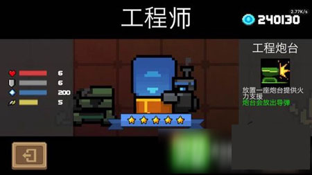 技能-工程炮台:放置一座炮台提供火力支援。升满星后炮台会放出导弹。