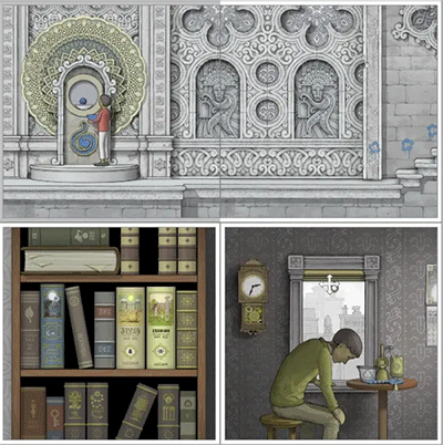 1、剧情完全依靠精美手绘插画与空灵配乐推进