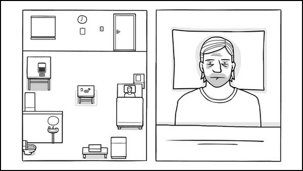 时间来到1972年8月14日,Bob在一间白色房间醒来,通过日程表可以看到Bob在这里每天过着非常规律的生活,每天要接受查房和记忆训练。在抽屉里有Bob的职工卡,可以看到Bob工作的地方就是之前【paradox】里出现的鸟食公司Johnsson。上面写着Bob的生日是1931年7月6日。桌上放着咖啡店Owl Nest的单据 (从后面的剧情可以得知,白门里的护士可以通过患者之前的物品连接对应的记忆进行提取。)。查房的护士Sarah说Bob遭遇了事故并且提了一些问题。