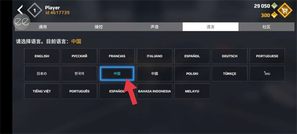 3、点击中国就会变成中文语言。
