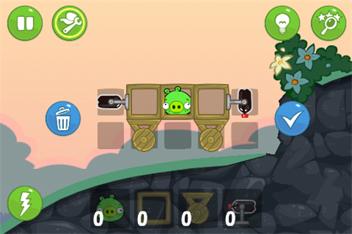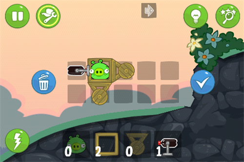 捣蛋猪2延续前作物理建造玩法,玩家需要通过组装电动轮子、TNT盒子等40余种机械零件,设计可穿越复杂地形的交通工具,帮助绿皮猪完成运输挑战!