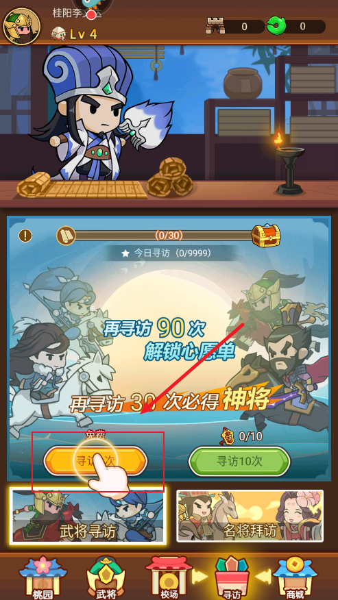 2、然后点击寻坊,首抽第30次必出神将。