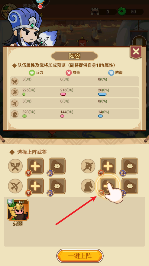 3、抽取武将之后将其上阵。