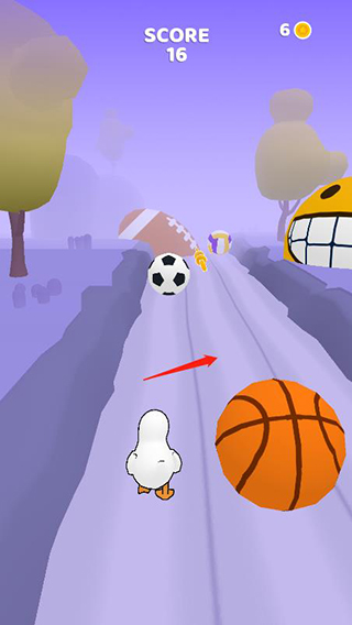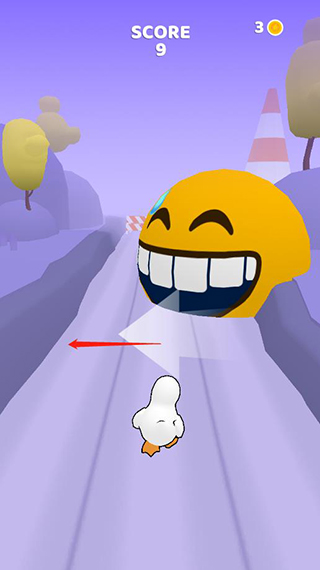 2、游戏的玩法其实很简单,就是经典的跑酷玩法,通过上下左右滑动屏幕控制鸭子跑酷,比如遇到这种障碍物就向下滑动;