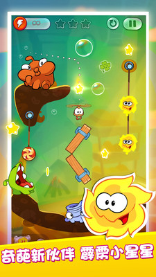 2、割绳子的玩法,帮助小恐龙吃到关卡中的糖果