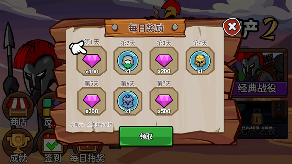 2、每日挑战7个关卡(周一至周日),完成全周任务获宝箱奖励。