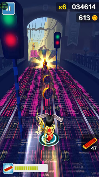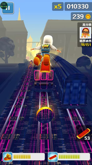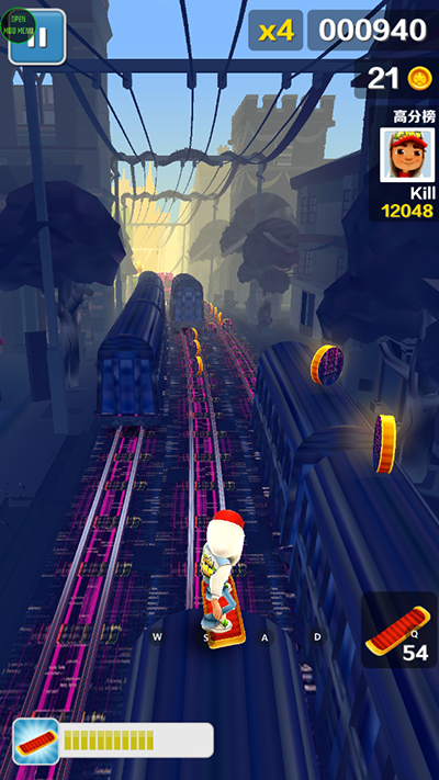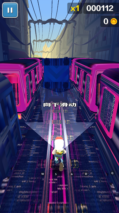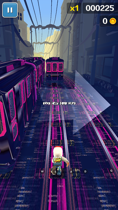 地铁跑酷游戏只需要玩家们通过简单的向上划,向下划,向左向右划来躲避障碍和迎面而来的火车,帮助主人公躲避脾气暴躁的地铁保安和他的狗的追捕,只要你不是正面撞击到障碍物就可以一直奔跑下去!