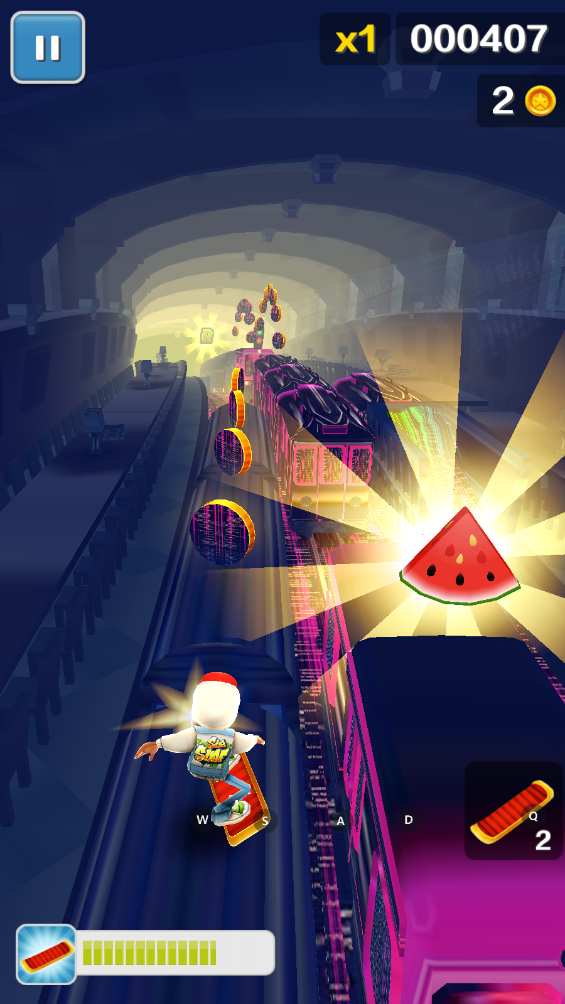 1、在地铁隧道中进行奔跑,逃避地铁保安的抓捕