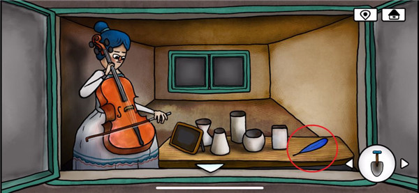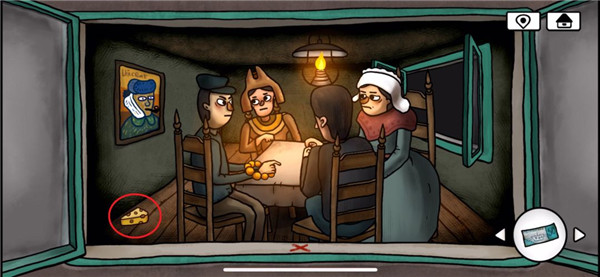 15、蹦出来一只小鸟,刚好挡住了切换房间的按键,进入左边房间,捡起地上的奶酪,喂给小鸟后可以来到小屋外面
