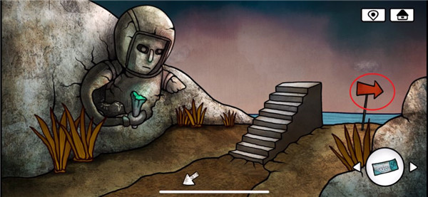 22、来到小屋左边,捡起沙漏贴纸,继续往左走,点击火箭大门