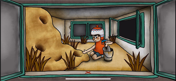 12、进入房间后,将铁桶递给小男孩,可以得到铲子,打开前面房间的窗户