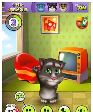 2、养育你专属的汤姆:和他玩游戏,喂他最喜欢的食物,带他上床睡觉。
