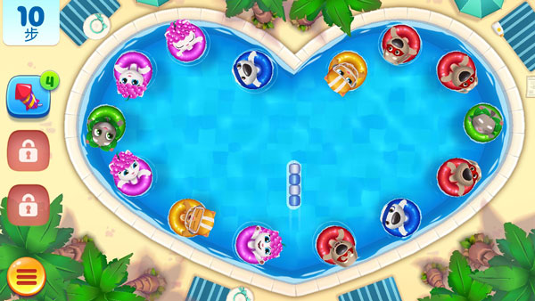 汤姆猫水上乐园每一个关卡都设计的十分巧妙,游戏中玩家需要消除泳池的泳圈就可以获得胜利并获得钥匙,升级水上乐园的建筑!