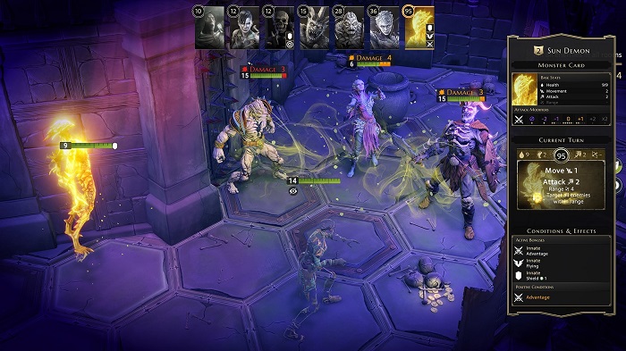 3、通过组合初始和升级后的行动卡牌执行攻击、移动等操作,增加策略深度。