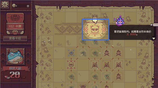 1、这是冒险地图,要想赢得胜利,玩家需要抵达这个骷髅头节点,打败本章的大boss。
