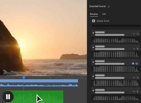 运用专业音频工具降低噪音并增强对话效果,同时加入高级特效来掌控音效设计。浏览音乐曲目,利用AI自动匹配您的片段,并获取授权——全部都在Premiere中完成。