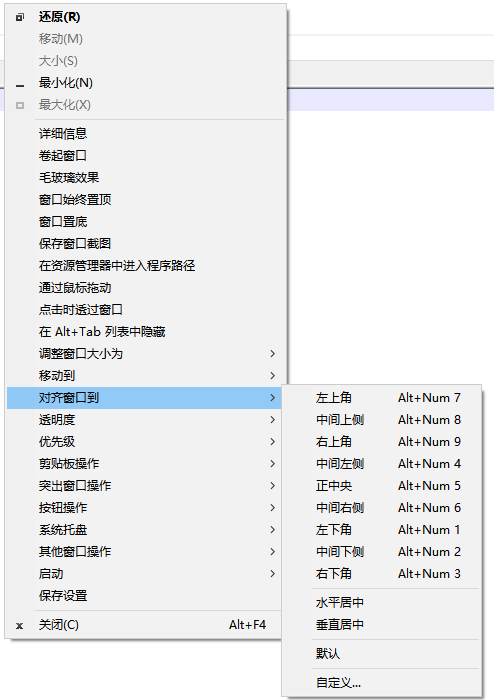 对齐:当前窗口与桌面上的9个位置中的任何一个对齐。