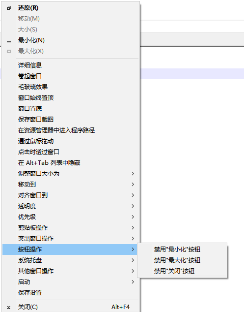 系统托盘:将当前窗口最小化或挂起到系统托盘。按钮操作 :禁用最小化、最大化、关闭按钮。