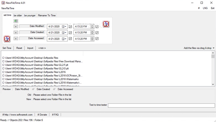 NewFileTime是可以帮助我们自由修改文件的时间信息的一款实用工具。我们可以通过它来自由修改任何文件或文件夹的创建时间、修改时间以及访问时间。不管是想把昨天才赶完的报告“伪装”成上周就写好的,还是想统一整理照片素材的属性。只需要把文件往软件里一拖,填上想要修改的日期,然后点一下按钮就可以了,非常的简单!下载安装网给大家分享NewFileTime官方下载,软件是官方最新版本,使用完全免费,有需要的朋友们赶紧来下载吧!