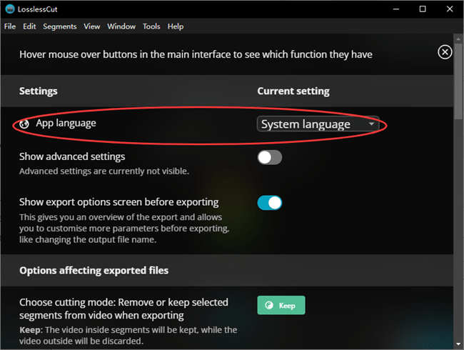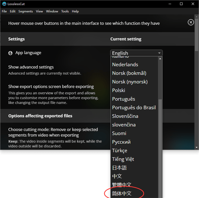 LosslessCut中文切换