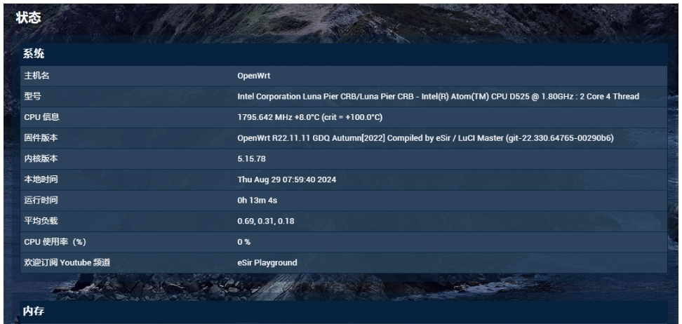 命令行与 Web 界面管理 :具有强大的命令行界面,用户可以通过 SSH 连接和 Linux 终端轻松管理设备;同时支持 Web 用户界面(LuCI),方便用户进行配置。