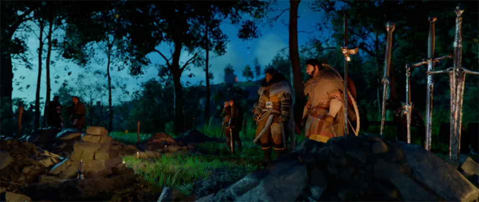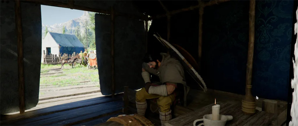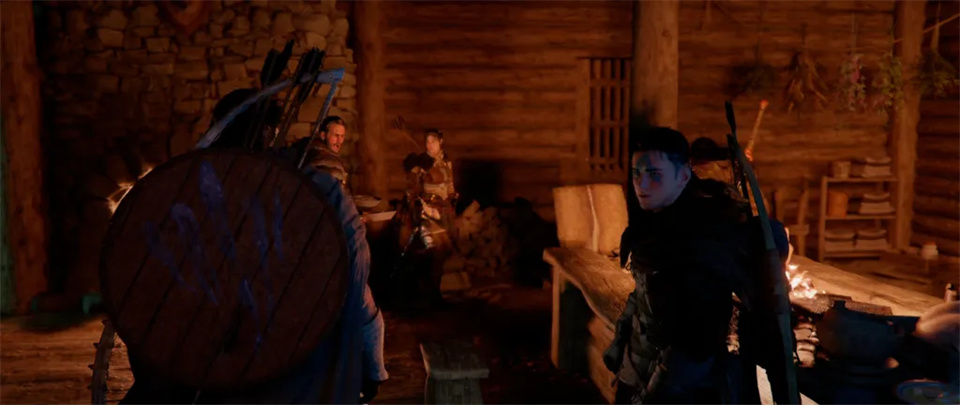 过场动画中你们为他们祈祷并送上告别。完成后,前往附近的房子,进去。