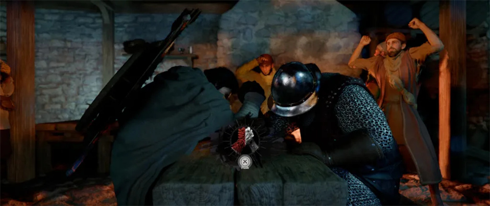这里,你会发现一个男人坐在你面前的桌子上;你可以和他互动,尝试掰手腕小游戏。