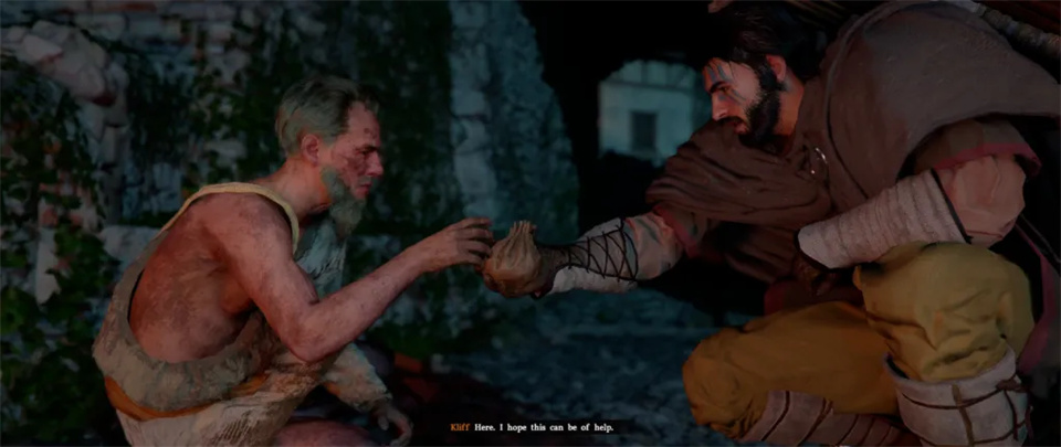 你不必走太远,因为乞丐正躺在下水道入口处,钥匙会打开那里的暗门。低头,另一边你会看到一个双手被绑的女人,她会寻求帮助。