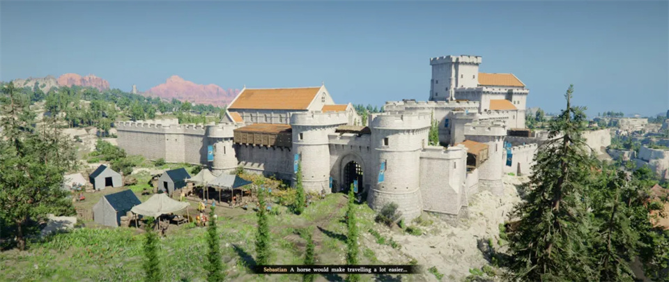 跟着塞巴斯蒂安前往马匹所在的位置,骑着你们俩一起前往小镇。