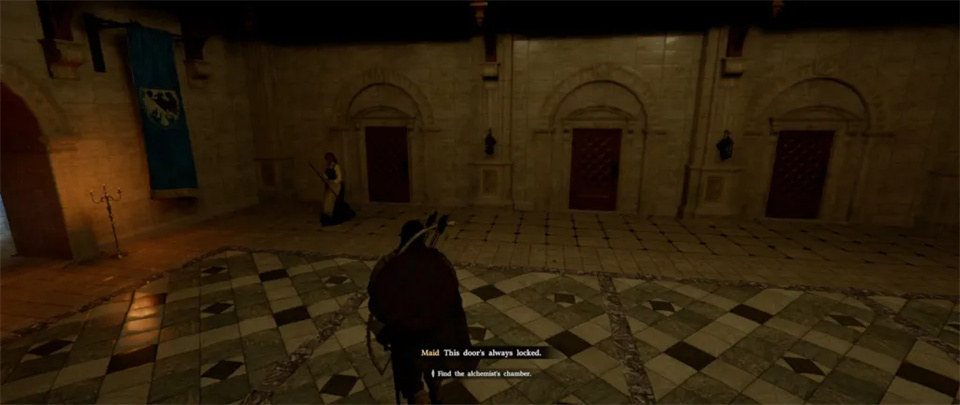 前往那里,位于镇北。在接近大门之前,确保装备上你收到的赫尔纳迪亚服装。穿着这身衣服,守卫会允许你进入城堡。