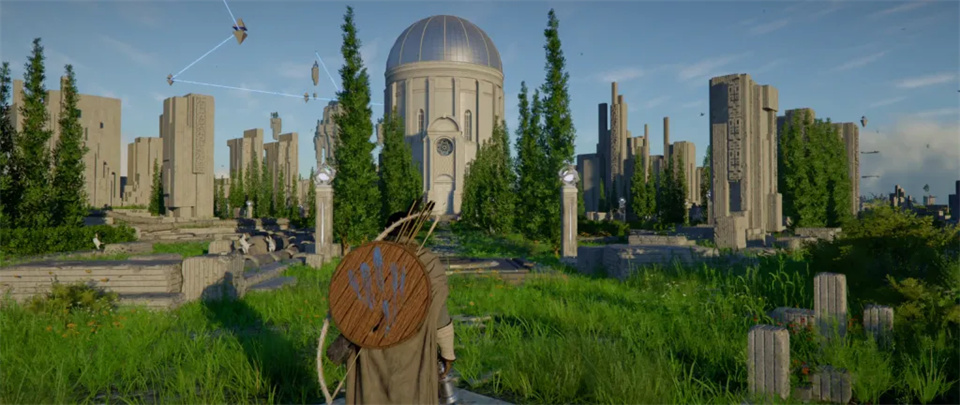 靠近前方建筑时,一只白鸟会站在你的手上。它会赋予你一种力量,并提到这是一个帮助你进入内心的工具。