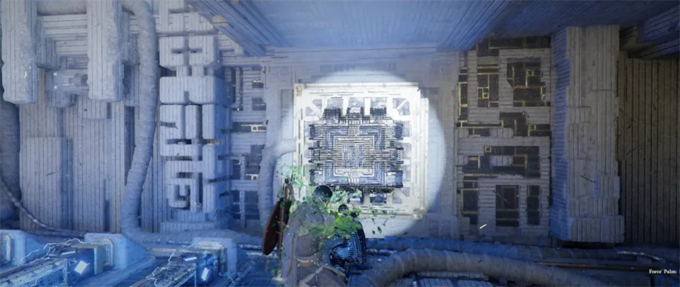 这会激活上层的圆形机制,你需要爬到中心。用力掌攻击它,会完全激活Nexus,你会看到一个物品出现在上层。